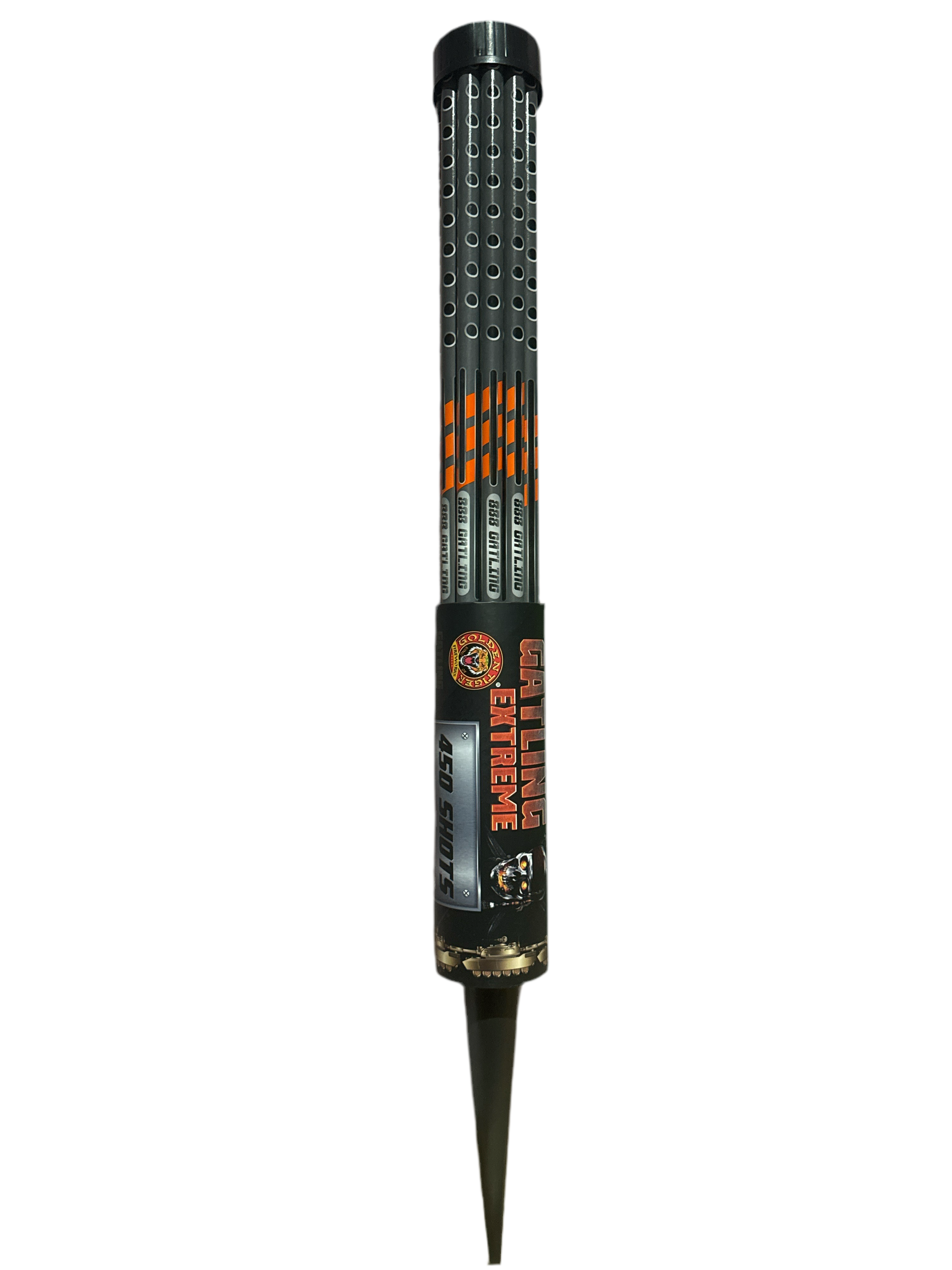 Intensify any celebration with Gatling Extreme 450 Shot, a powerful roman candle barrage that offers 450 shots. Light it up to witness a stunning cross-pattern display in the sky. With its impressive effects, you'll feel like an action hero watching your own fireworks show.